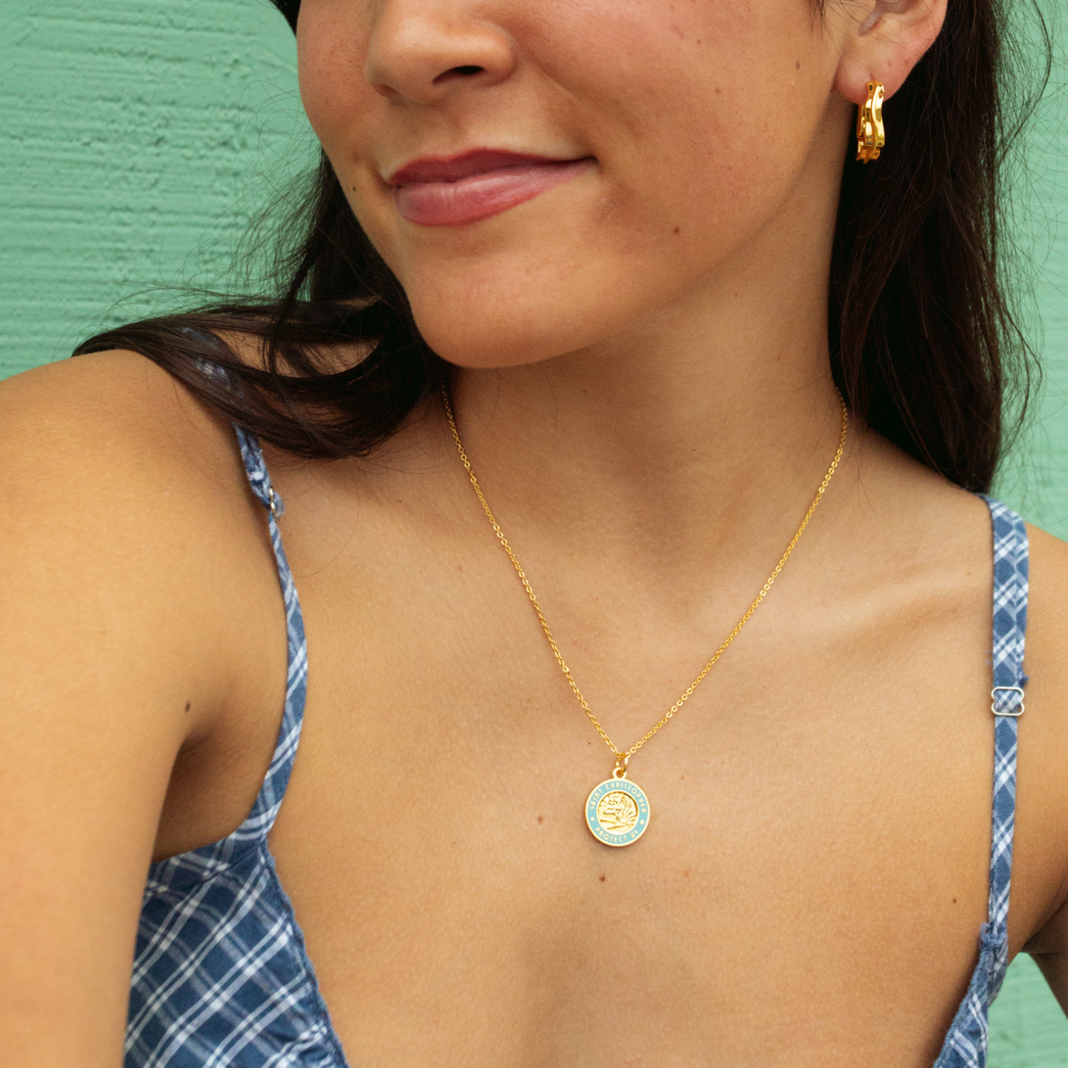 ¡Lo pediste, te escuchamos! Presentamos nuestro nuevo collar dorado de San Cristóbal en azul celeste. Elaborado con un impresionante borde de esmalte azul celeste, este collar es la última incorporación a nuestra colección clásica. Ahora disponibles en aún más colores, nuestros collares dorados de San Cristóbal son perfectos para cualquier ocasión. ¡Cantidad limitada, así que consigue el tuyo mientras puedas!