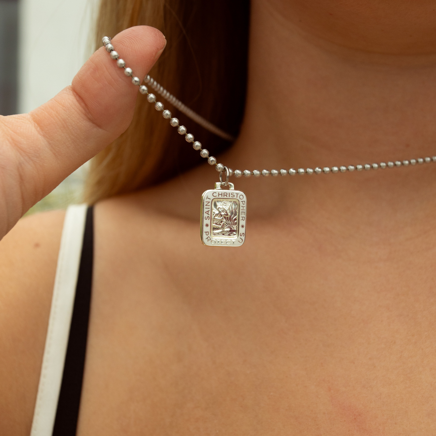 ¡Nuestros colores más vendidos ahora disponibles como San Cristóbal Rectángulo! Nuestro nuevo San Cristóbal Rectángulo Blanco Plateado presenta un elegante centro plateado enmarcado por un borde exterior blanco nítido. Este elegante diseño le da un toque moderno a un clásico favorito. Perfecto para quienes buscan un look limpio y sofisticado con un toque divertido, esta pieza sin duda destacará en cualquier colección. Esmalte duro de color en el borde exterior.