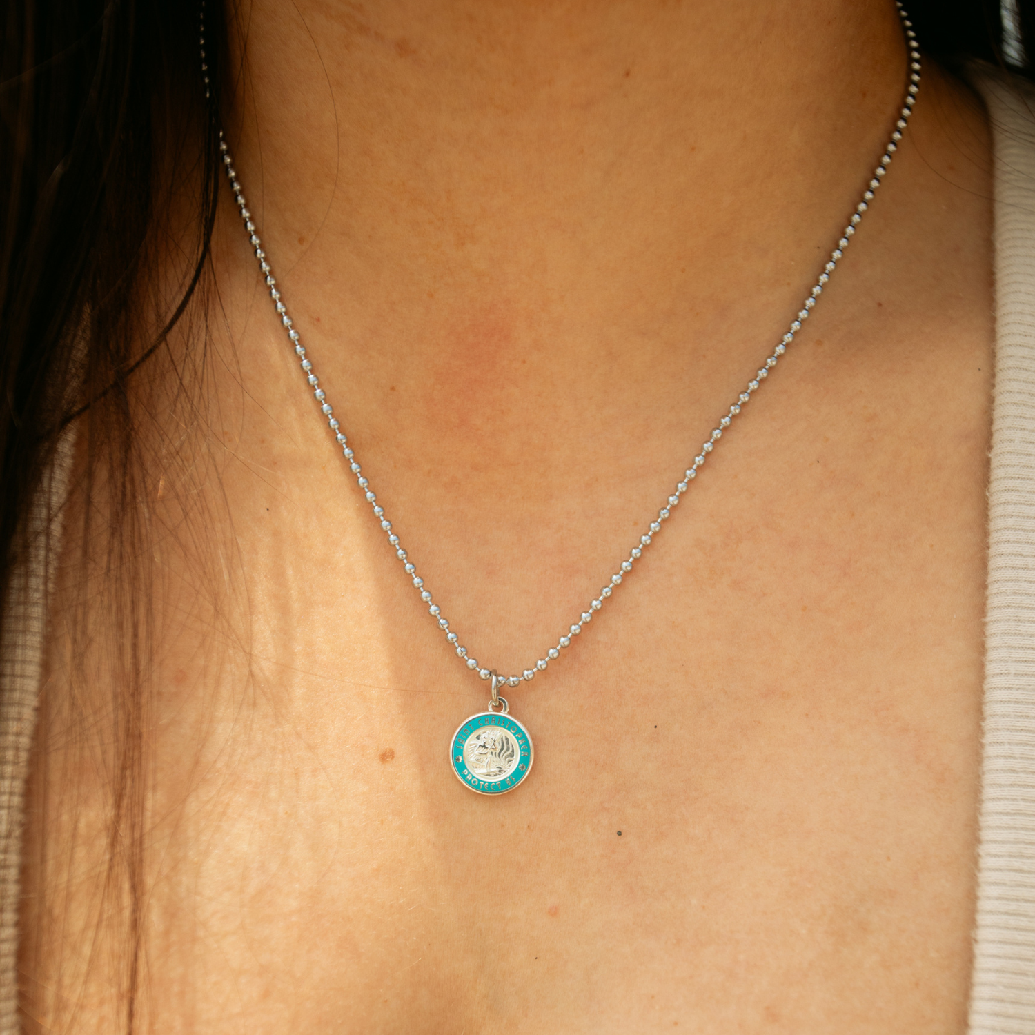 Llévate un trocito del sur de California a casa con nuestro precioso y delicado "Collar de San Cristóbal". Los colgantes de San Cristóbal "Get Back" están disponibles en tamaños más grandes, lo que los hace perfectos para combinar con otras joyas.