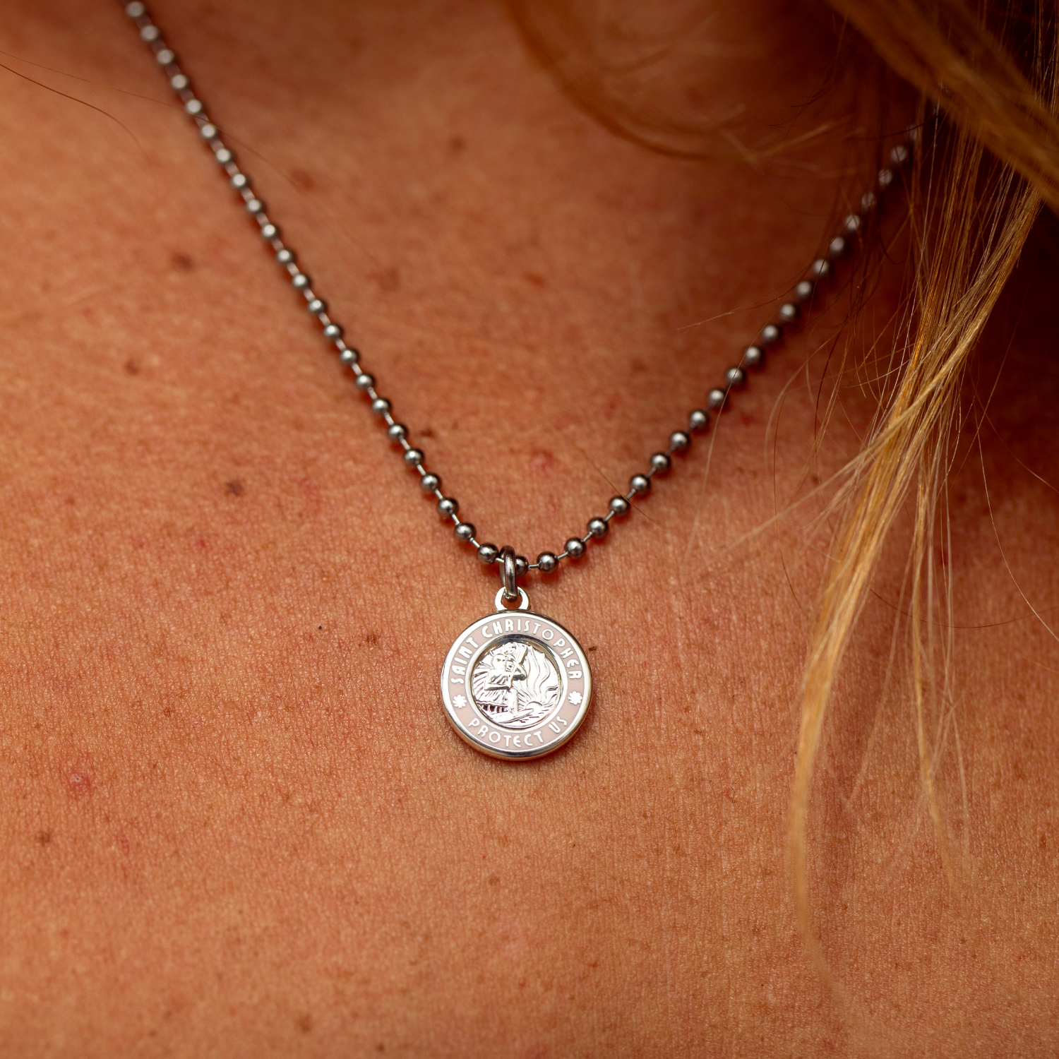 Llévate un trocito del sur de California a casa con nuestro precioso y delicado "Collar de San Cristóbal". Los colgantes de San Cristóbal "Get Back" están disponibles en tamaños más grandes, lo que los hace perfectos para combinar con otras joyas.