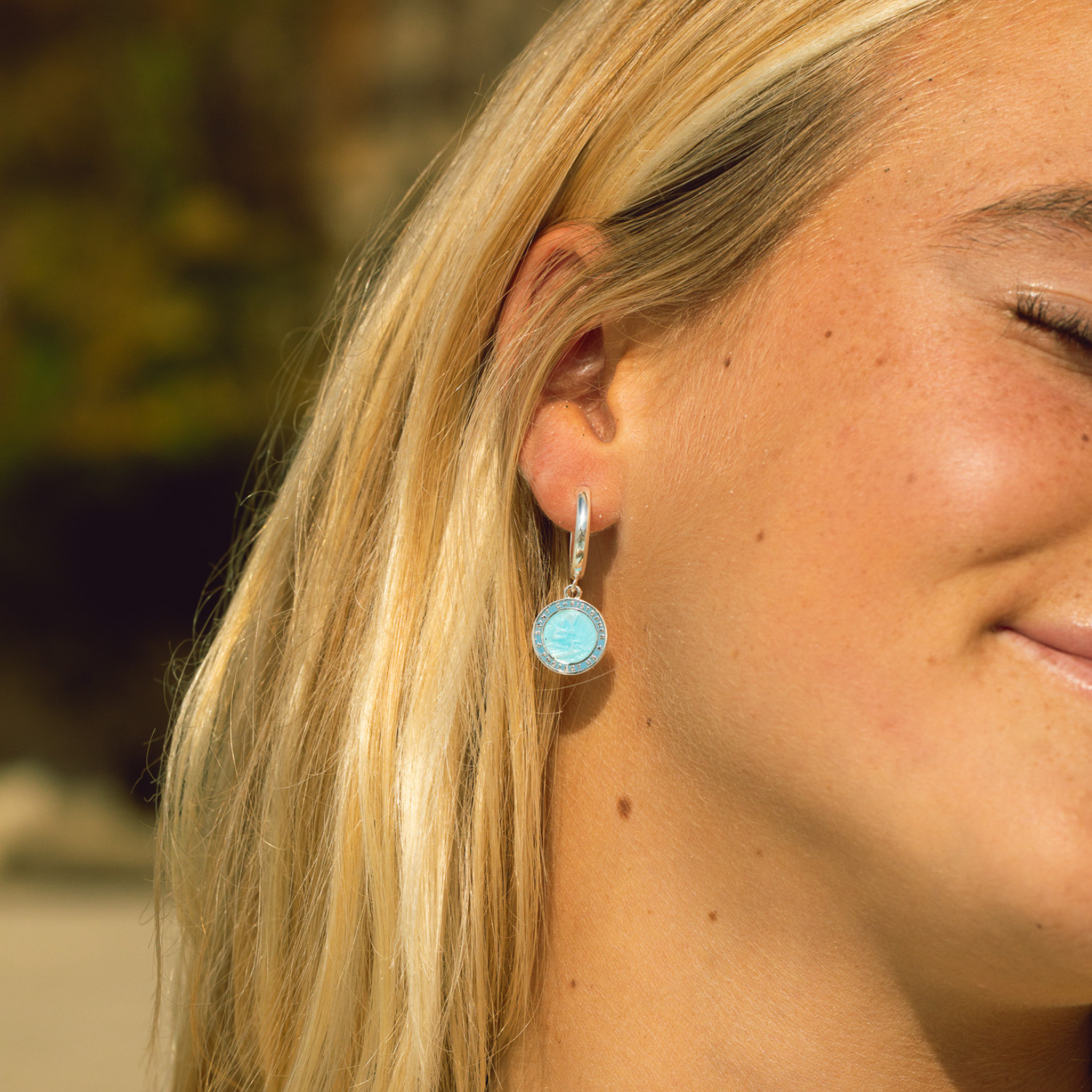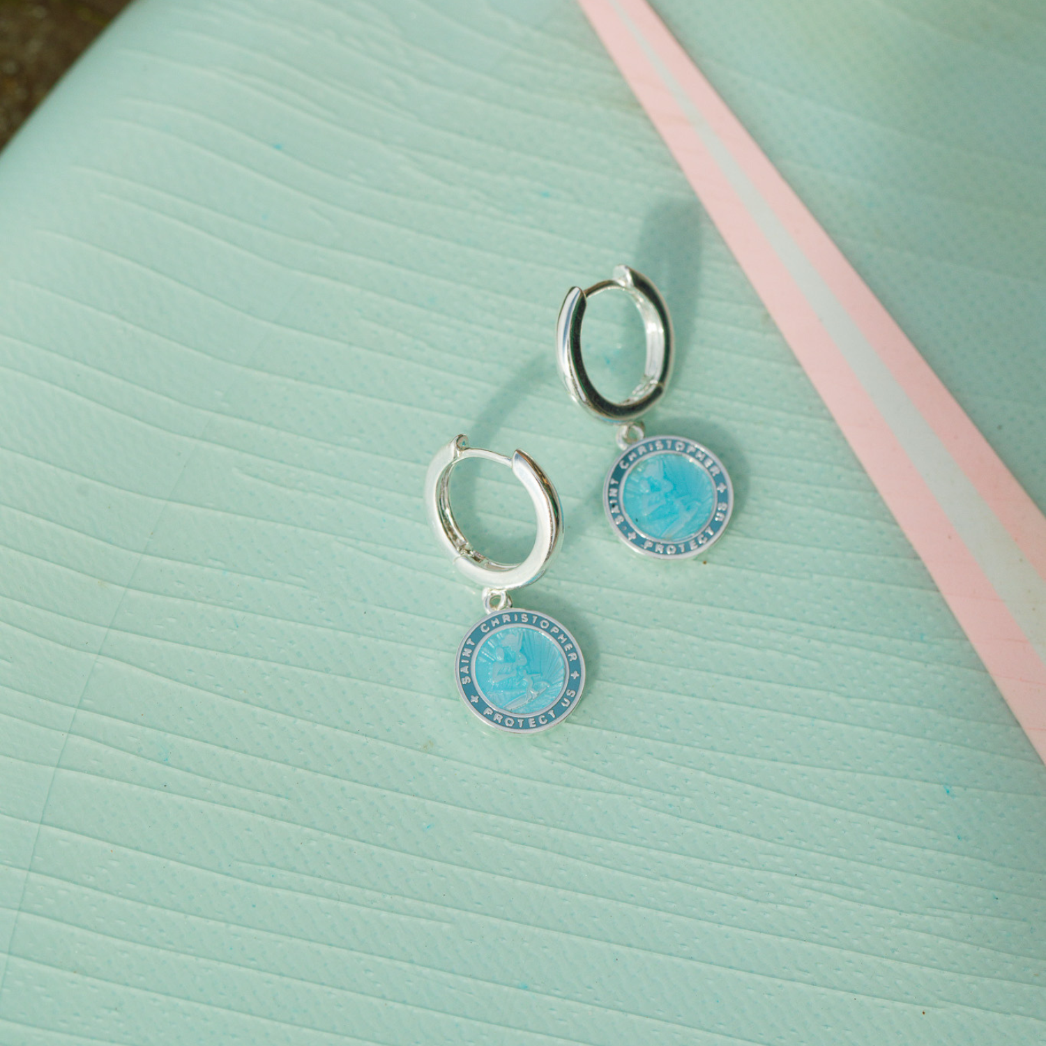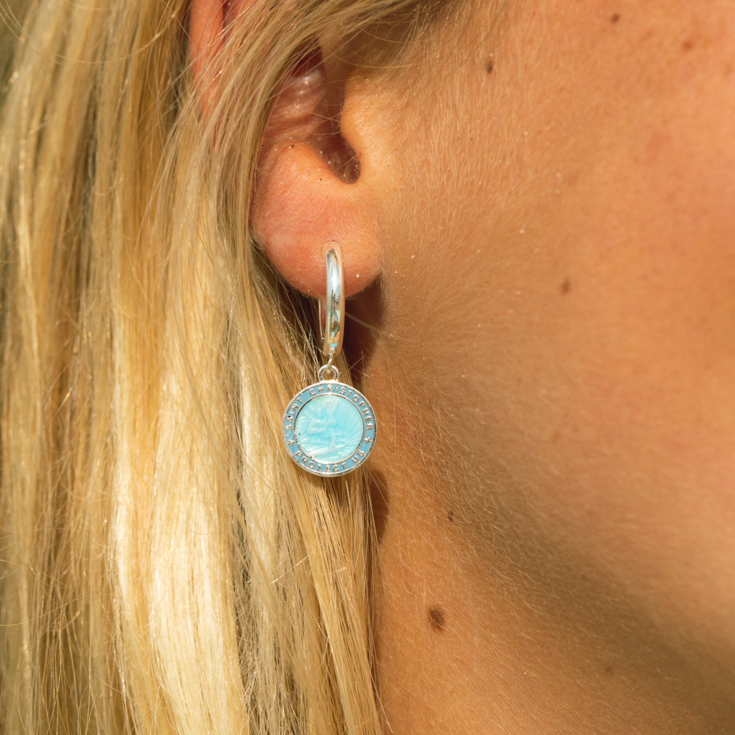 ¡Protégete con estilo con nuestros aretes de San Cristóbal en un nuevo e impresionante azul denim! Ligeros y vibrantes, son la combinación perfecta de encanto y elegancia costera para cualquier look. - 2,5 mm de grosor - 16 mm de diámetro - Aro Huggie